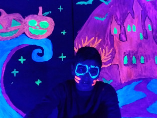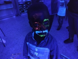 Para celebrar Halloween realizamos un taller con pinturas de luz negra al que invitamos al resto de cursos a nuestra aula. Además, desde el área de Lengua cada alumno/a creó una expresión escrita de miedo y la grabamos, creando un vídeo con todos los cuentacuentos. ¡Encantó a todas las clases!
